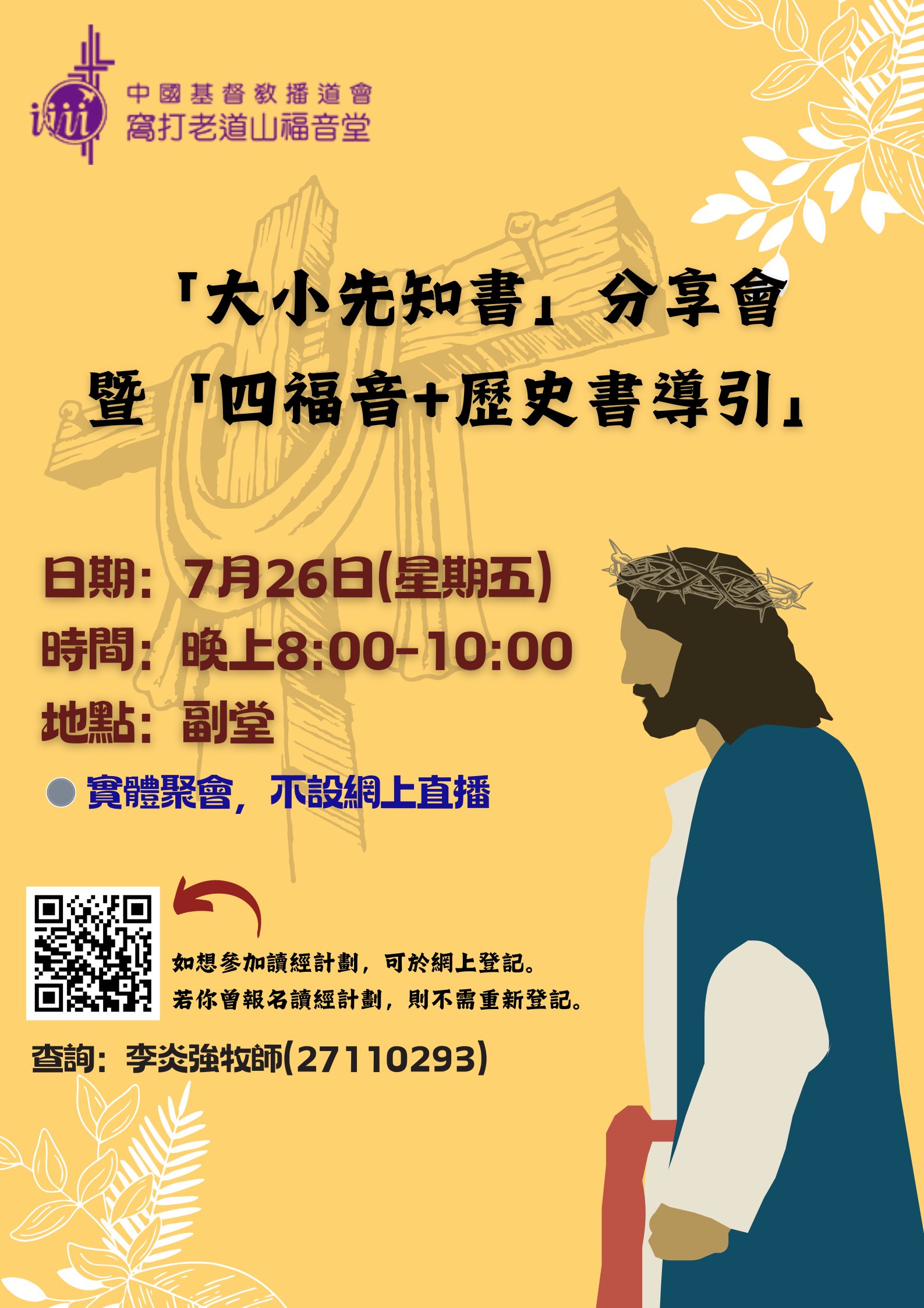 「大小先知書」分享會暨「四福音+歷史書導引」講座